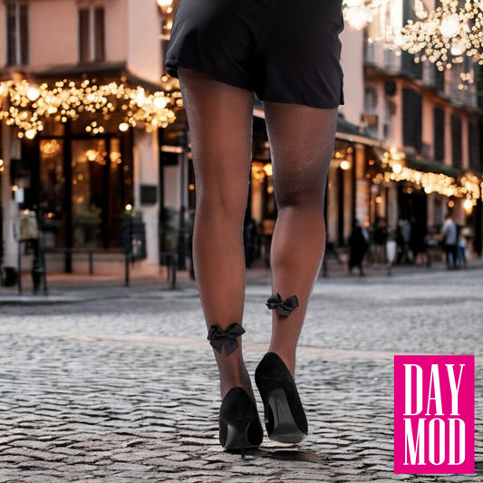 Women's European Fashion Sheer Black Stocking - Securely Attached Bow Accent