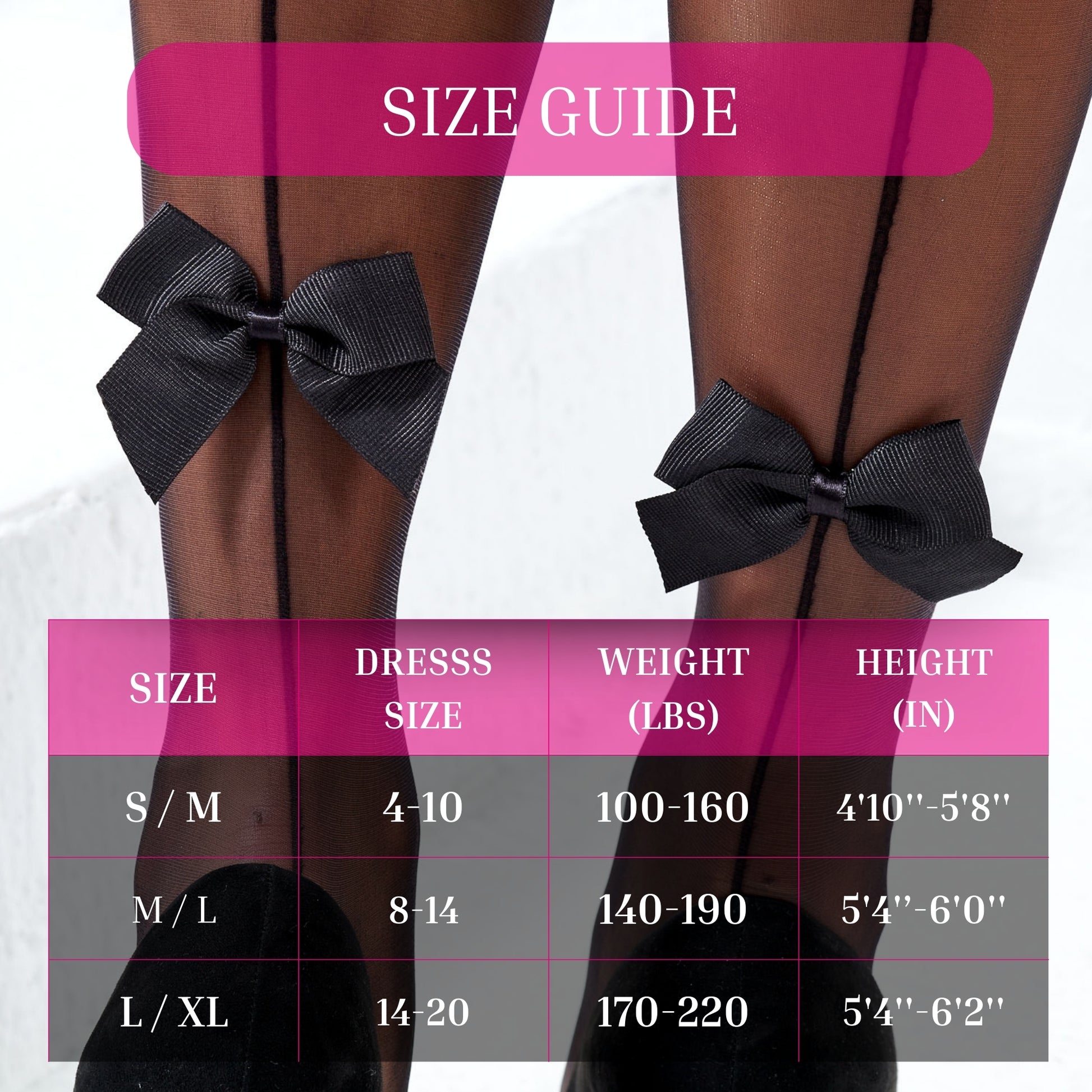 Women's European Fashion Sheer Black Stocking - Securely Attached Bow and Seam Accent
